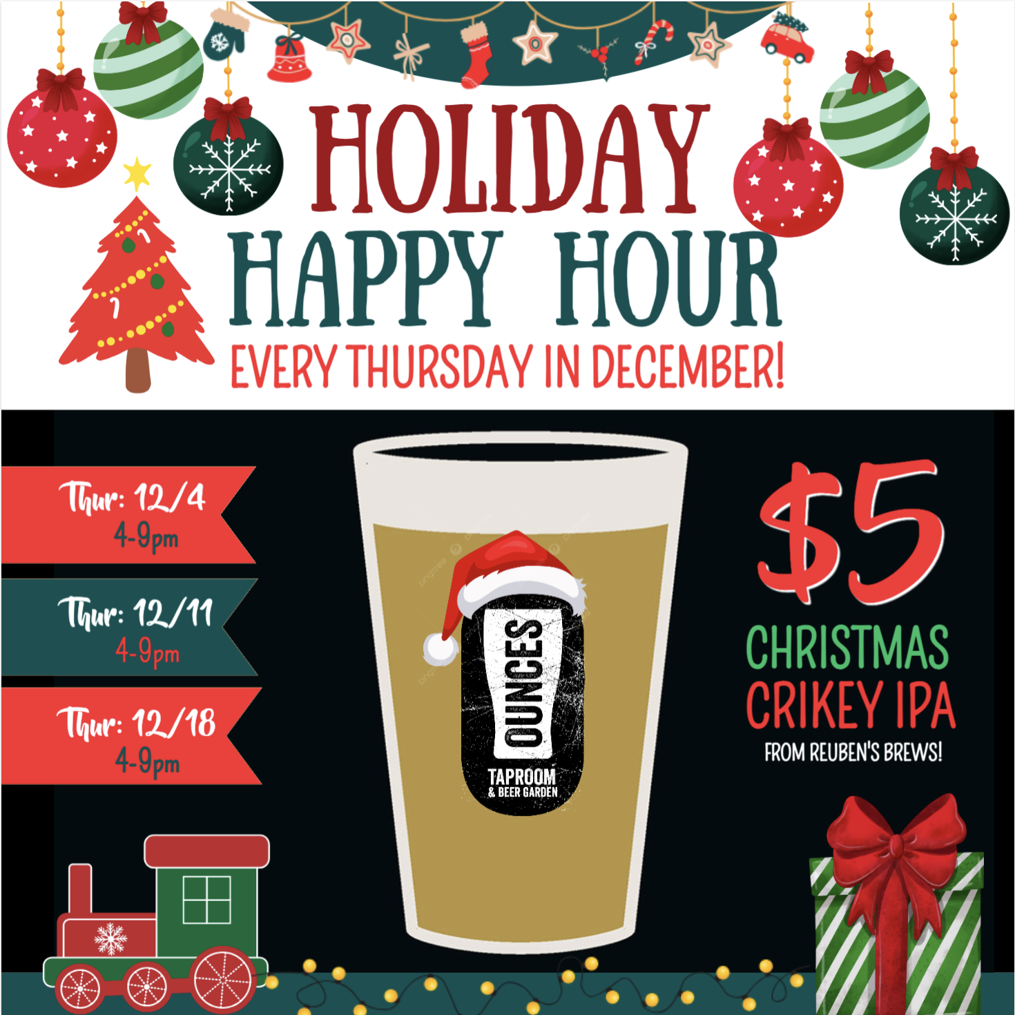 Holiday Happy Hour! Thursday, December 18, 2025 4:00 PM 9:00 PM 16:00 21:00 Ounces Taproom & Beer Garden 3809 Delridge Way SW Seattle, WA, 98126 United States (map) Google Calendar ICS