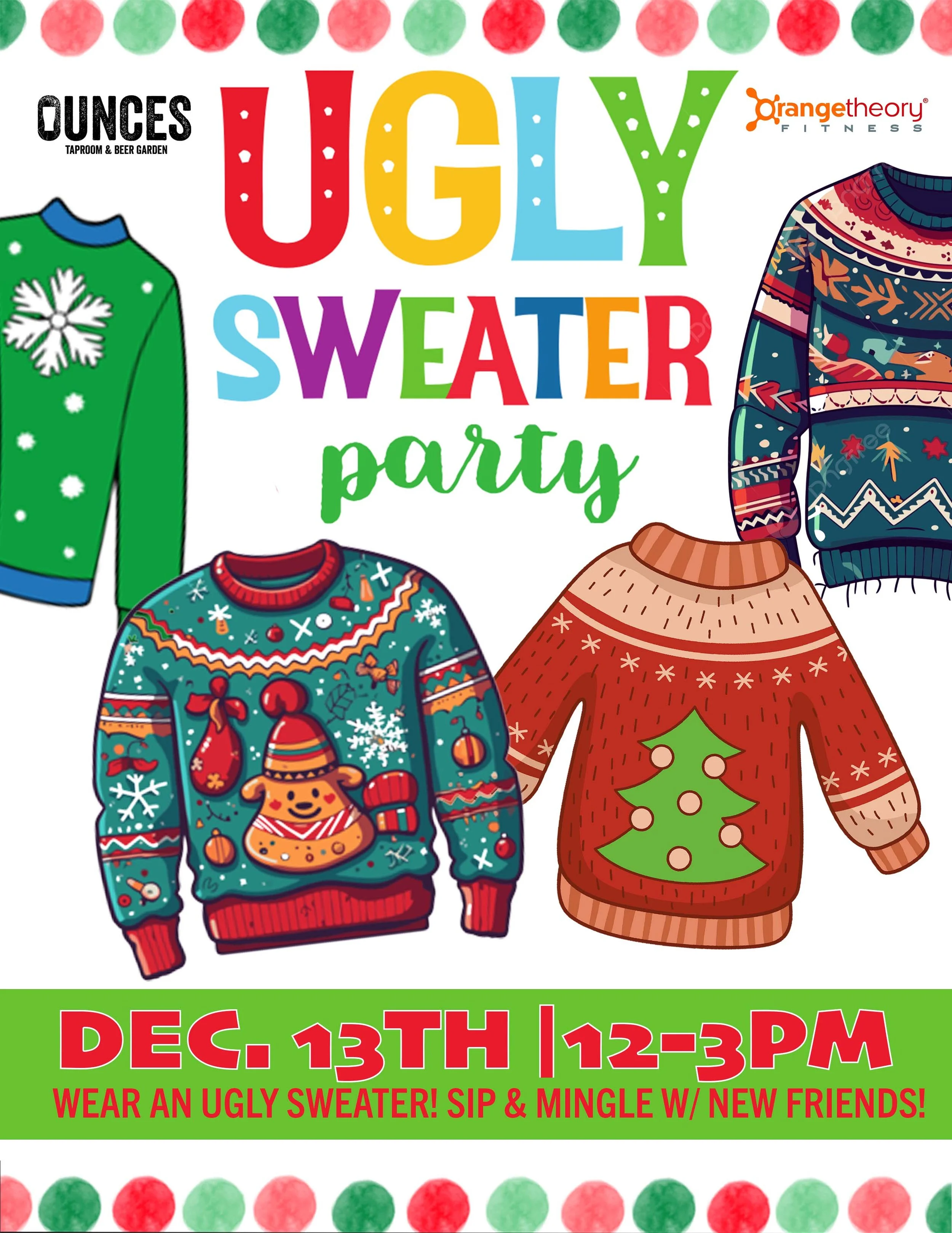 We’ve partnered with our local Orangetheory Fitness Studio who will be here to judge a “Best Sweater” Contest for bragging rights (…and some free passes to for Orangetheory!)